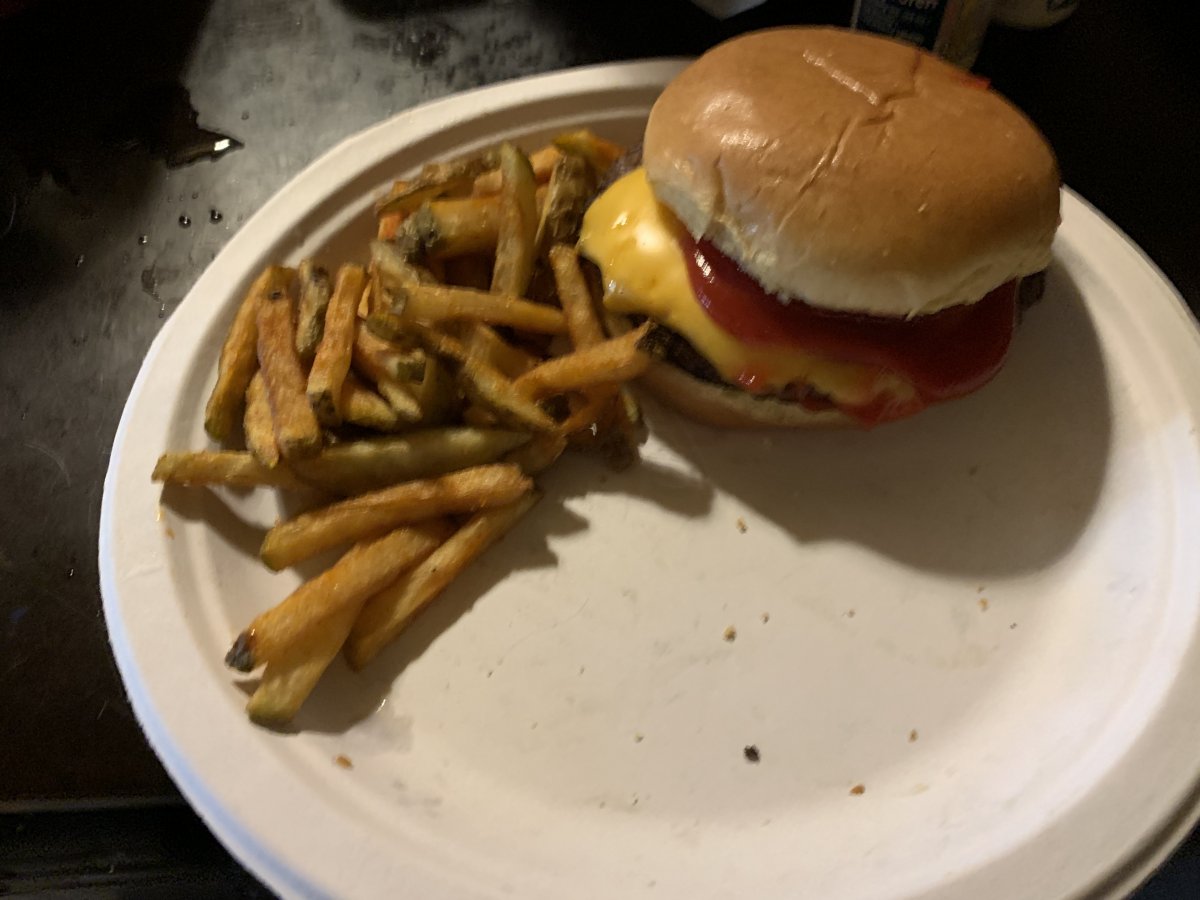Burgers on the bbq. And fresh cut French fries. Seasoned with kosher salt and smoked paprika