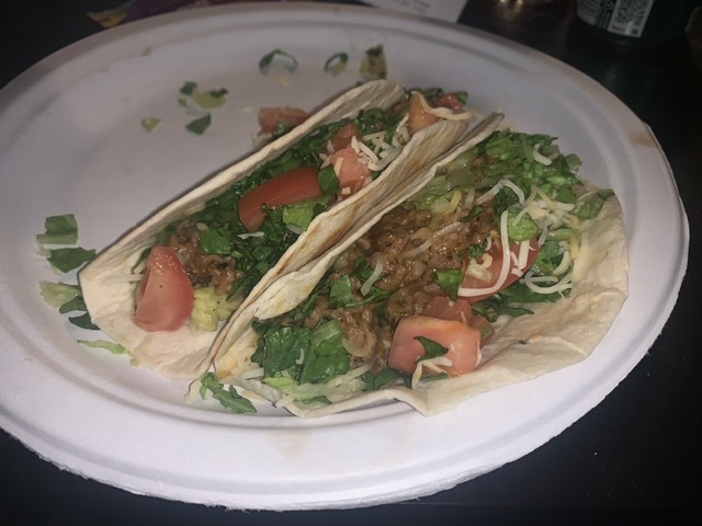 Made tacos tonite. Homemade guacamole. Beef seasoned then shredded Mexican cheese mixed in. Lettuce. Tomato. And more shredded cheese.