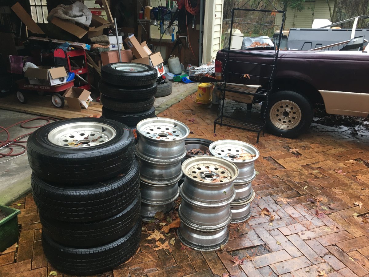 Seriously, all the Ranger stuff and trailer stuff I picked up for very little money for these two projects, and then I’ll craigslist the rest. The Lincoln wheels and tires are back ups for the Mark five and the two town cars. I was able to pick up the whole wheel and tire with white walls cheaper than tires when I wanted to get rid of the black sidewalls. I’ll probably move the 14s over to the bullet hole wheels when the time comes, and I’ll keep my eyes out for white walls that would work for the Lincolns.