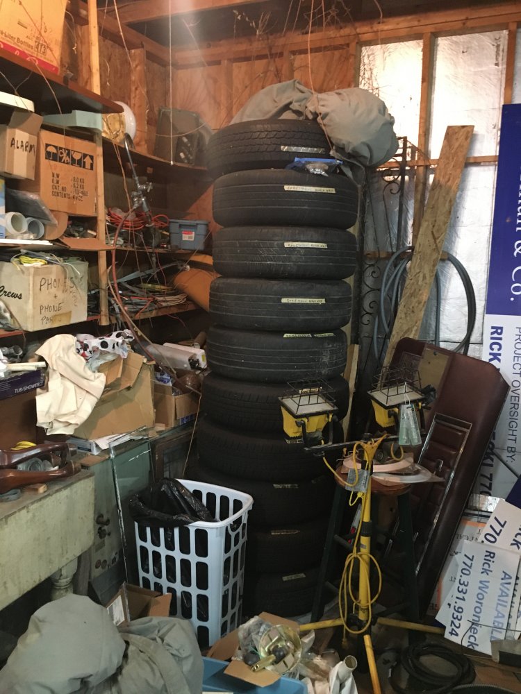 haha, I call you, and raise you 19 14x6 bullet holes, 5 5x5 lincoln turbines, 5 5x4.5 lincoln turbines, 2 spare f250 steelies, a couple skinny trunk spares, 3 80s 15” mercedes alloys with new Firestone formula 500 tires, about 13-14 8, 10, 12, 13, 14 & 15 inch trailer wheels and tires, and another 6-7 orphans buried under junk! A couple are nice raised white letter, but most are just R&B (round and black) for trailer use.