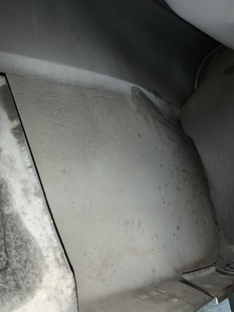 On the two rust holes (only rust holes), after I brushed them out and blew them out with air, I mixed up a very thin urethane and then squirted it all around in the holes. I used 2 parts thinner to 1 part polyurethane. I squirted it in with a 3ml syringe (no needle). It’s thin and soaks spreads everywhere, hopefully slows down the rust.