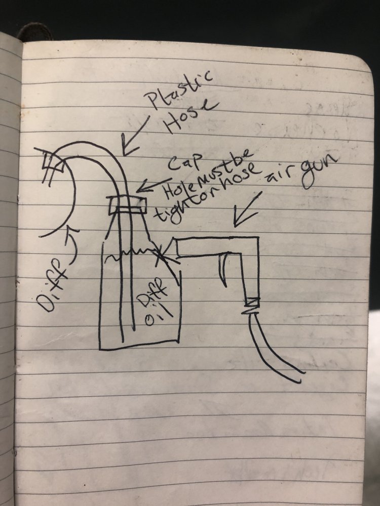 This is one of many things I think should have had a better tool/way to do. Quart bottles make a mess. The transfer pumps are too slow. The pumps that go in the top of the bottles make the least mess, but are slow. They used to come with the gallon jugs of Sta-Lube, but not anymore. Walmart used to sell them, as did the auto parts stores. I couldn't find one and all the places to order online would take two weeks for it to arrive. Another thing I think should have been improved given the safety issues are jack stands. My driveway has a slight slope. If I put the rear up on jack stands the truck will roll and tip the jack stands over. Wheel chocks don't always work as they can slide. The problem is the small foot print the jack stands have. I think the 3-ton have about a 7" foot print and the 6 ton are about 9-10". I have to roll the floor jack in from the side and lift up on the frame to keep it from rolling. I'm seriously thinking about drilling some holes in the driveway and dropping large nails through a large piece of lumber into the concrete to keep the truck from rolling. Anyway, I looked and there is nothing that isn't expensive to keep a vehicle jacked up securely.
