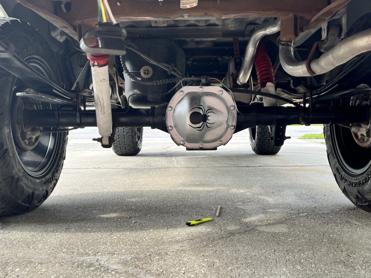 I rattle canned mine too. It looks like yours was done with one of those new high grade chrome spays.Rattle canned my diff cover silver. It looked too plain so I taped it up, drew a spider on it and cut it out with a cheap plastic knife and shot it flat black. Yay or nay ?