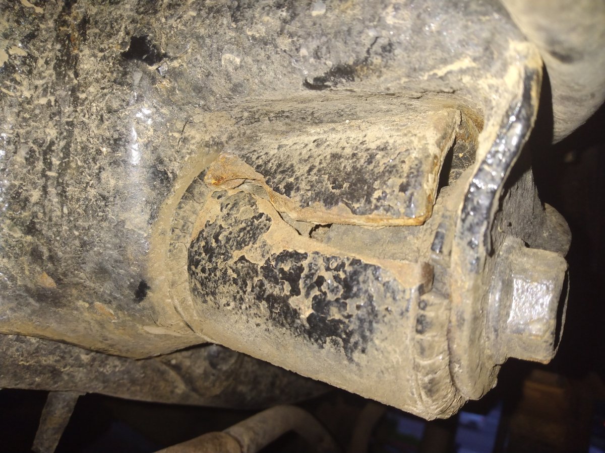 Had a rotten day. I went to loosen a body mount and the bolt just spun around with the nut. While I was under there I found why the truck drives funny...