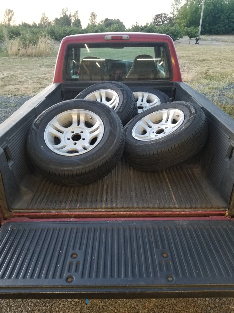 His truck has been all over the place on wheel and tire combos. Originally with stock 16" wheels and tires, but he hated the stock wheels on the truck. I ended up with a "spare" set of the wheels on @scotts90ranger's truck, he liked them and ran those for years. Then recently swapped back to the stock 16s because of tire availability, but the shop for some reason went oversize on the tires. Now dad is wanting to find a set of 16" he likes and go back to stock size or slightly smaller than stock. There are a couple of styles on the 16+ rangers that I think he's like but I haven't found them available locally yet. One is a more squared off split 5 spoke and the other is a y-spoke design, I really think he'd like the split design.