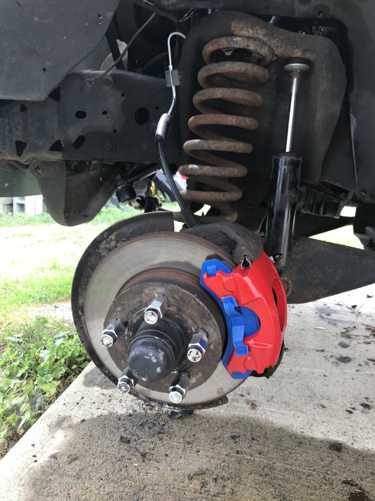 Front calipers, new flex lines and new hard lines from master cyl forward. Been awhile since ive had my flaring kit out. Glad I remembered my own tip on taping the line nuts on before I make a flare. My small pipe cutter was seized so I had to go out and get a new one, must of had brake fluid on it when I had it out last (3 years ago?) Still need to bleed the brakes, need to read up on where to start. Im thinking drivers side, Its been awhile since Ive done a complete front end.