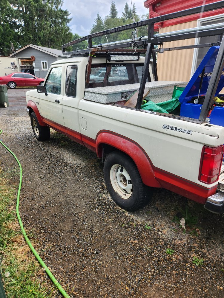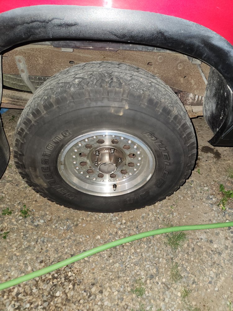 Well I stopped by the old secret parts hordin spot, and got the surprisingly good stock leaf springs from my original 83 ranger. Got them wire wheeled and painted. Even though it's kinda pointless, but now the axle, lift blocks, and springs are nice and black. Got everything put together on the driver side. I still need to cut the pass side original leaf spring free to get it replaced. Then it's just a matter of connecting the main brake line, and getting the conversion u joint. Also thinking about running a set of b2 wheels white, with the black squares around the cut outs, and red pinstriping, I do love my aloy bullet holes but idk these may look good. Idk there is a reason we all go with the bullet holes, i wish i could find another set of chrome bullet holes granted they need love View attachment 97326View attachment 97325View attachment 97324