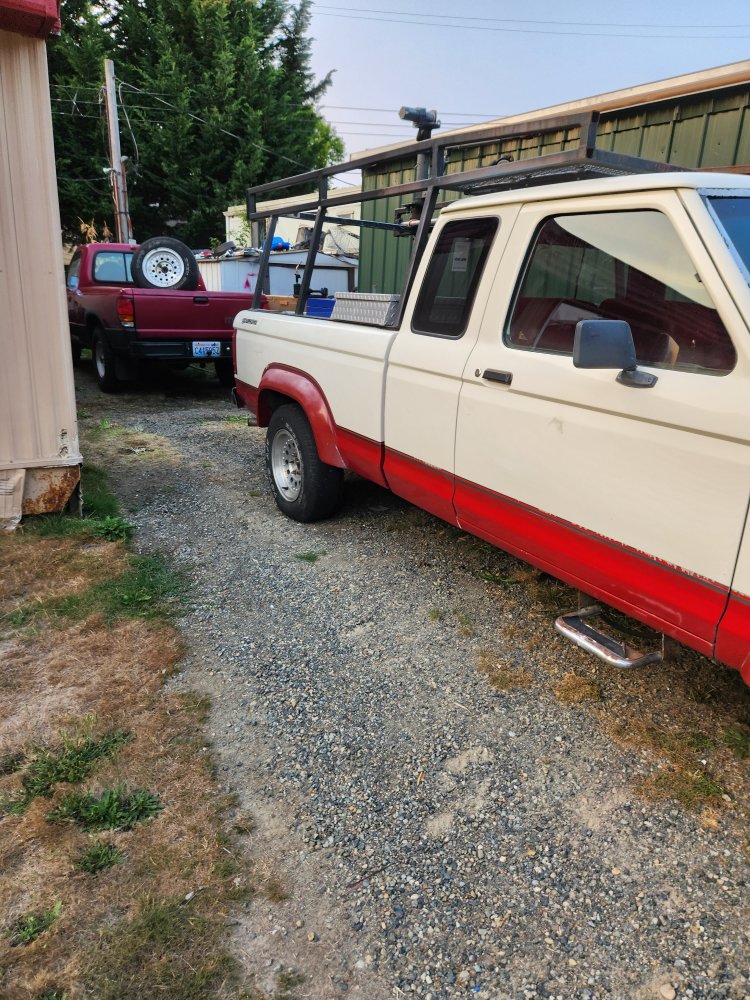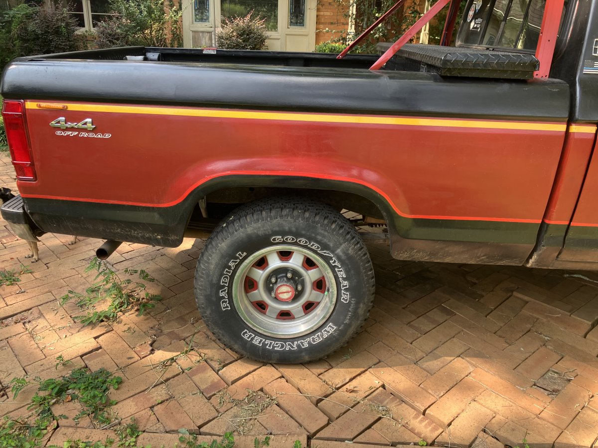 Is that a 92 truck? I googled Ford two-tone, 92 ranger images. To me, to just have the two-tone on the bottom like that I thought was unusual, but apparently it’s something they did in different colors with different two-tone pinstripes above it.