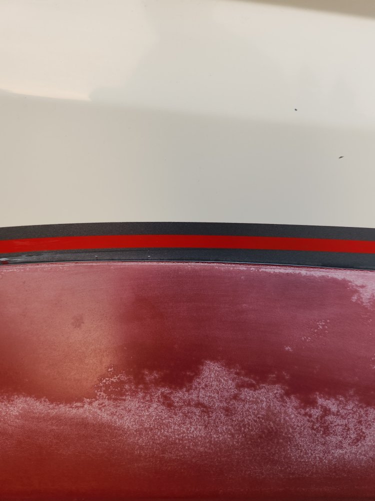 I would sand the wheel flares to get rid of any loose clearcoat or such. I joke about an 80 grit finish, but if you paint them with Rustoleum, it is so thick it takes into the grooves, and you won’t see the scratches from the sandpaper. I would put a fresh coat of red on those wheel flares.