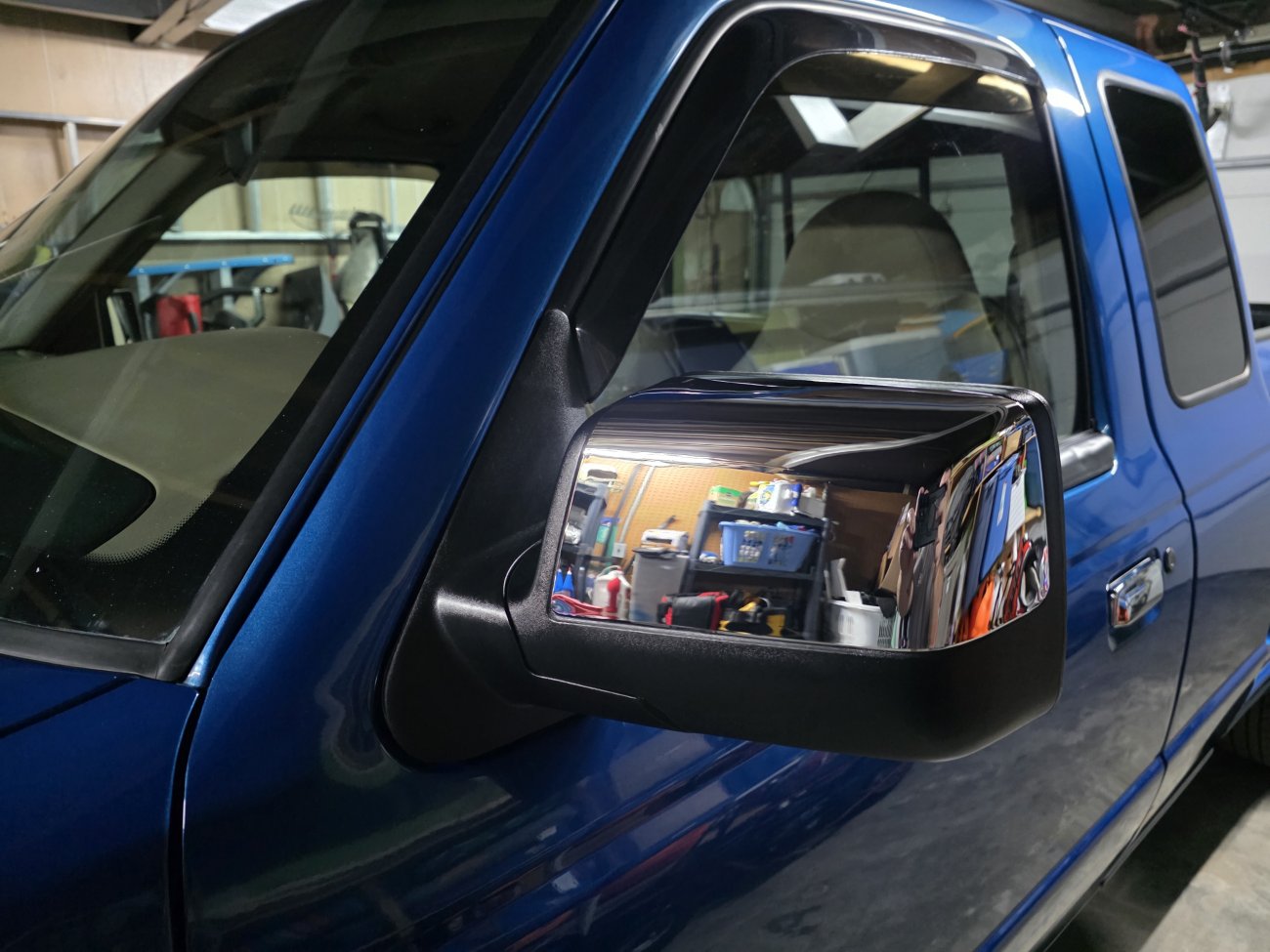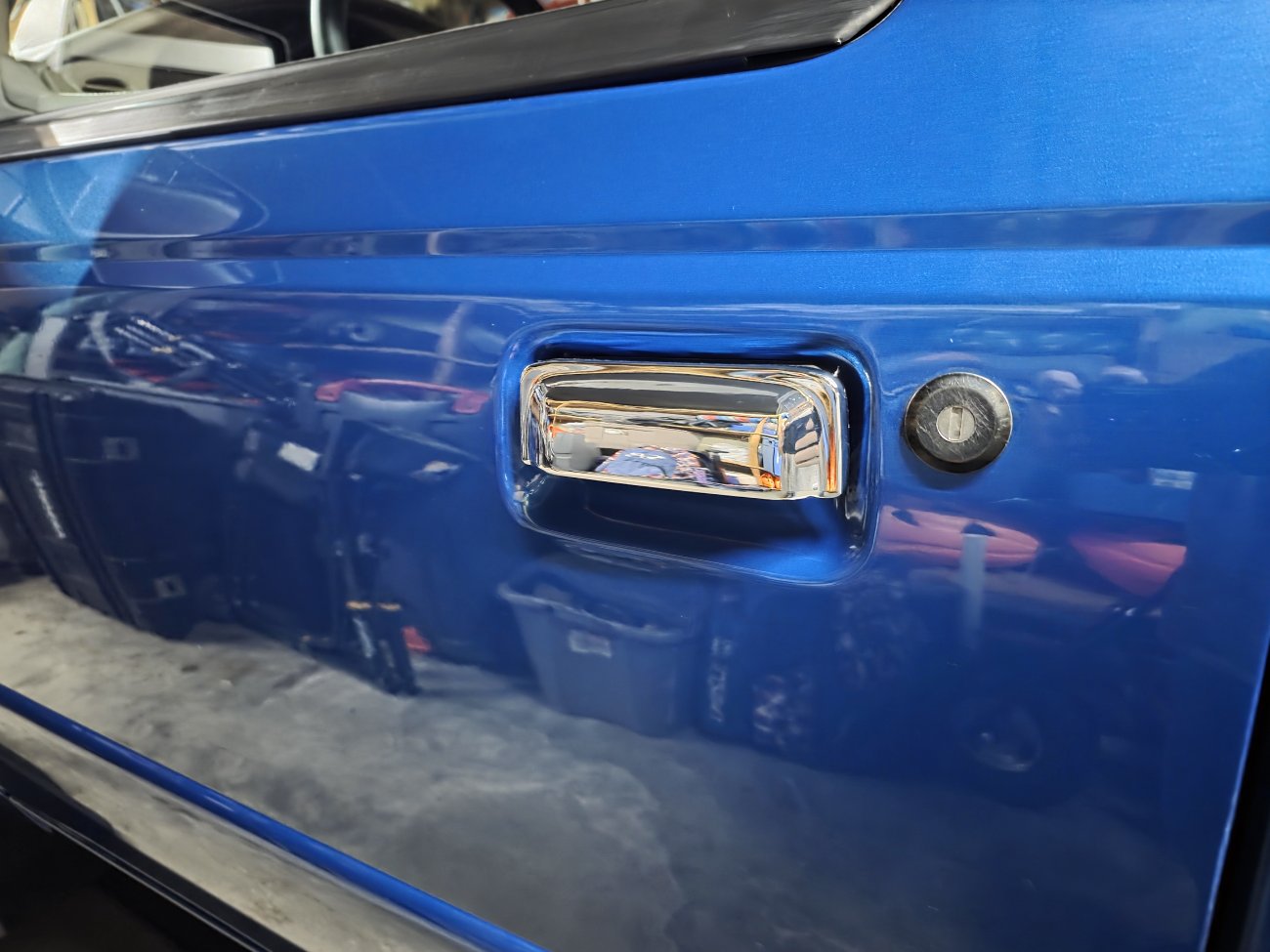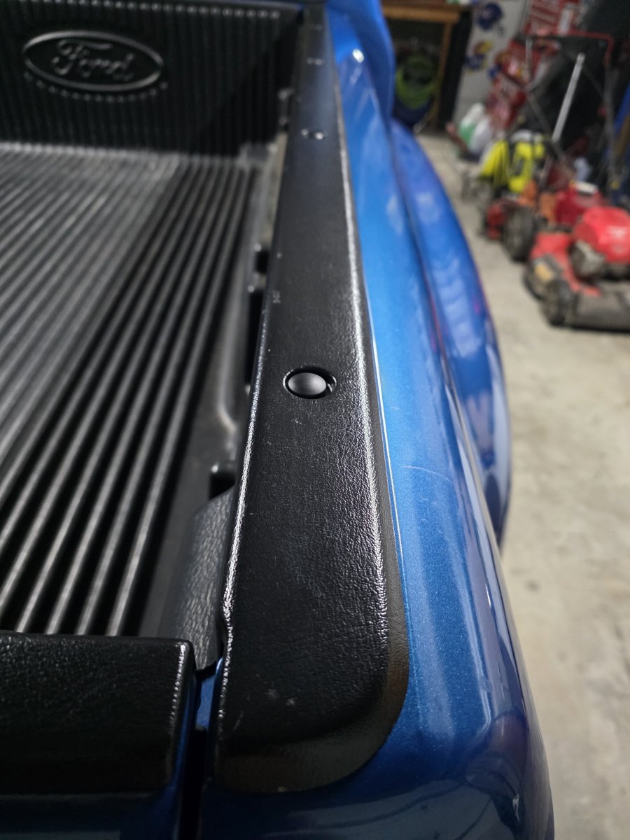 Today I did a hand wash using a Blackfire clay mitt, followed by a buff using Meguiars ultimate compound on my DA and topped with Klasse all-in-one. Yesterday I installed the all metal chrome tailgate handle, metal chrome door handles and 06 up mirrors with chrome caps. Tomorrow I am installing the new leaf spring shackles and rear differential service or I would have had some outside pictures. Pictures also include the bed rails that I restored with Turtle Wax Acrylic hybrid solutions trim restorer. I was also able to source the bolt head covers from Menards since I had a few missing, I replaced them all so they would match (no OCD here). They fit but all did not snap on like the originals, just a few did, so I used a little black RTV to secure them. Ignore the CHMSL, LED's from Diode Dynamics should be here tomorrow for it, as well as the dome light.