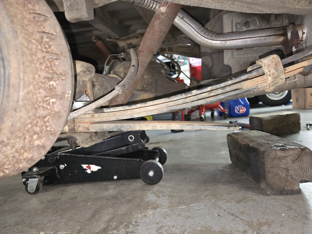 Mocked up the rear with a spring under set up,the axle hit the bump stops before the frame lifted off the jack stands. LOL. I'm wondering if the overloads have been flipped over in the spring pack. They bend down at the front/back. Kind of doubt it because the truck was bought from an old Dude,one owner.