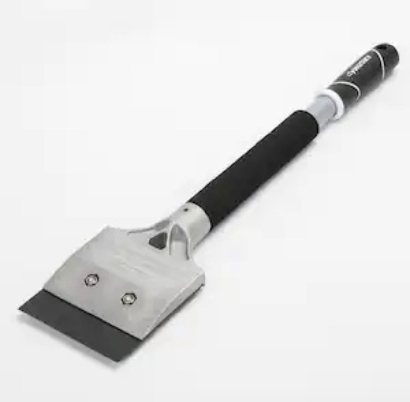 That didn’t work. Then I tried a heavy duty floor scraper with a blade that could do some damage: