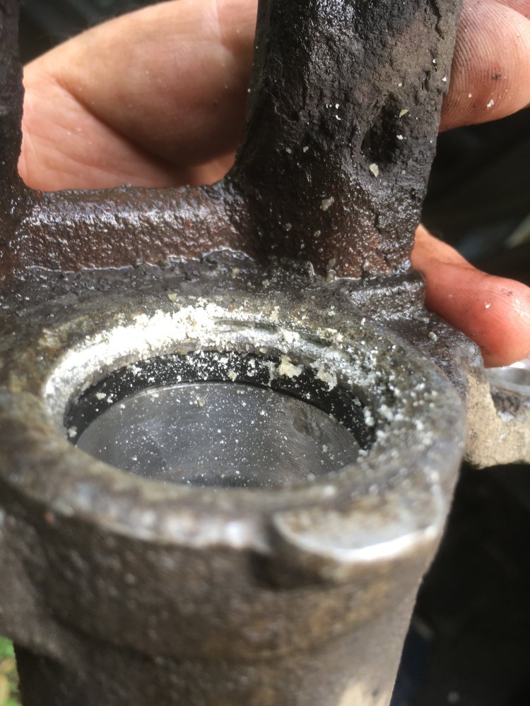 Short version, couldn't get the piston back in because the same thing happened behind the seal, pushed the seal out enough the piston wouldn't go back in. Edit: so I pulled the seal and cleaned that out too.