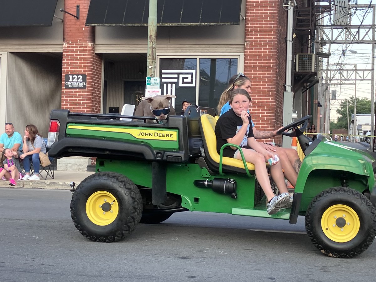 Local street festival after work today, a few interesting vehicles. love the red ford truck, whats funny is the guy he is running against for judge was also in the parade, with a orange pontiac gto convertible. Took a picture of the gator just because the dog in the back with sunglasses was comical