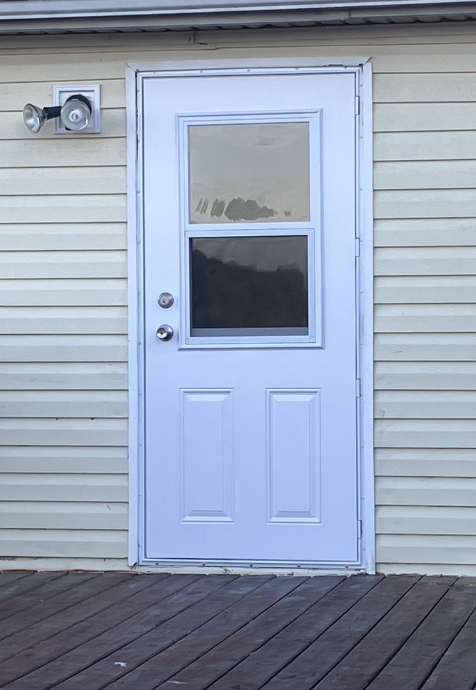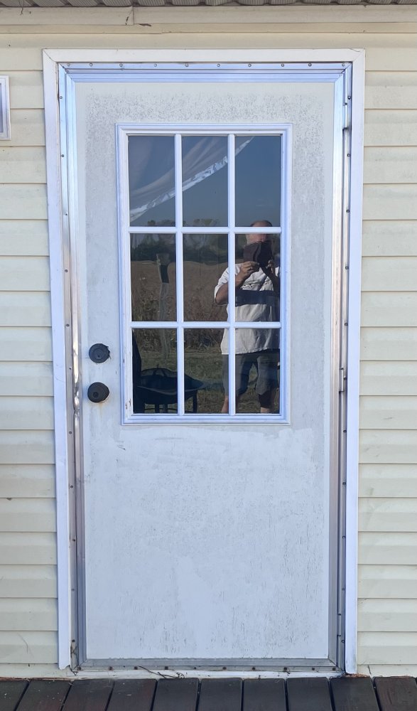 Now that is one heck of a view… awesome.Got the new back door installed, As with most projects this 2-1/2 hour job only took 6 hours! I did have a bad sill plate, not surprised really, Ive helped with other similar projects in the past & that bottom board always seems to be in need of replacing. The inside trim had bad spots at the bottom from moisture. Its a compressed wood product so you know what happens when moisture appears, it expands. I think I spent more time on trim than the door change out. New door is much heavier. old one was fiberglass skinned with a foam core. The new one is a aluminum shell with a wood core. Original door was hard to lock & could only be locked or unlocked from the inside. Plus new door has a window that can be opened. I had priced a door through lowes & they wanted over $1,000 for one, I went to a actual manufacturer & saved a little over half. View attachment 117868View attachment 117869View attachment 117870View attachment 117871View attachment 117872View attachment 117873View attachment 117874View attachment 117875