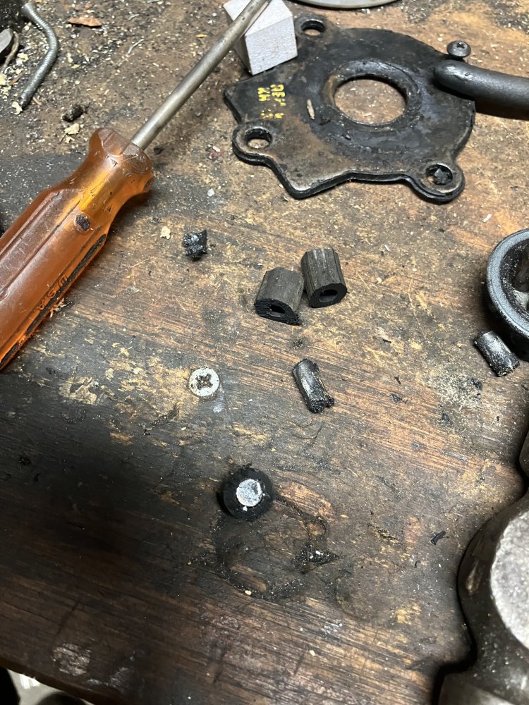 If you look at the second picture, you can see the steel centers laying on either side of the gear. On the bottom, the black mess on top of the worm gear is the bits of the vacuum tube that were ground into little bits. When I took it apart, and I cleaned it out, the vacuum tub rubber was not only broken up in little pieces, it was also mushy. I had used STP Molly grease when I rebuilt the motor, and I think the Molly grease helped to disintegrate the rubber on the vacuum tube.
