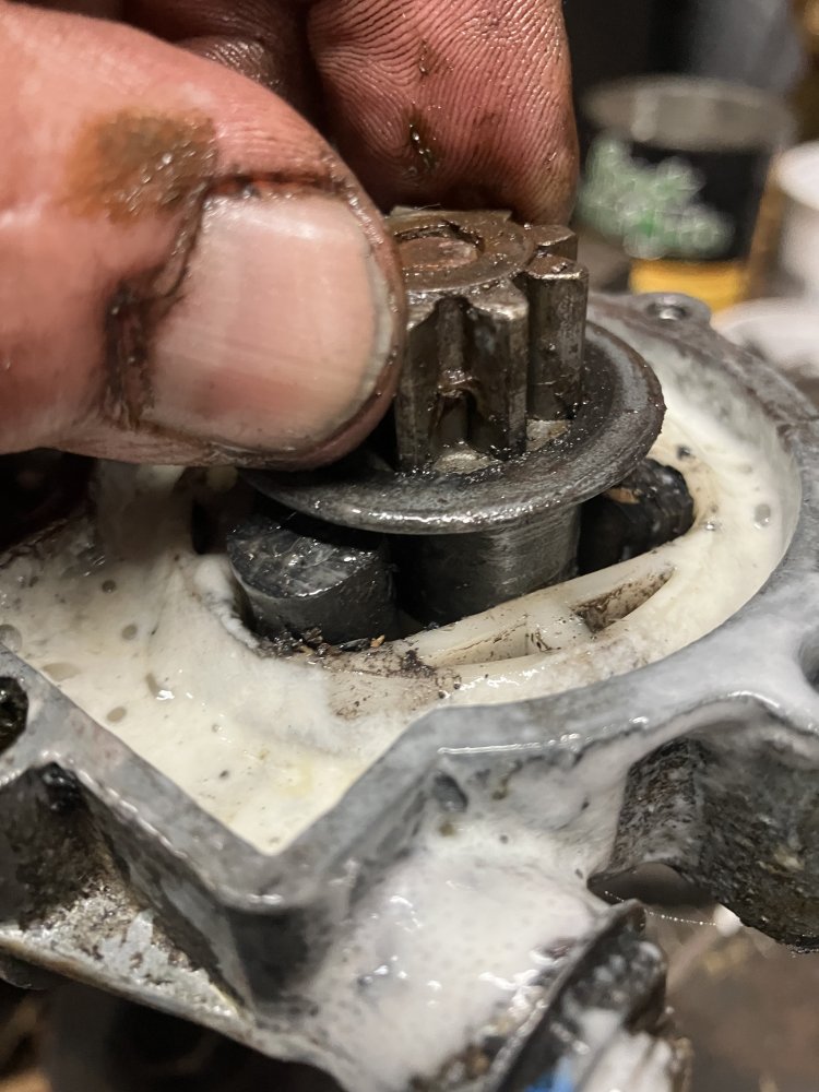 I cleaned out all of the old grease and debris from inside that gearbox. Then I used spray lithium grease and bathed it, actually puddled it up in there.
