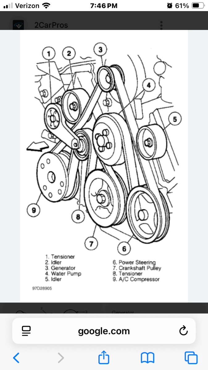 Better success today up until I realized they gave me the wrong belt. I went to NAPA and got the correct belt, they said geez I’m sorry and charged me $10 more. I still took an hour and a half to get it on, I guess I’m just brain dead. Once I did it, it really wasn’t that hard. It’s like that old saying, “12th time is the charm!”