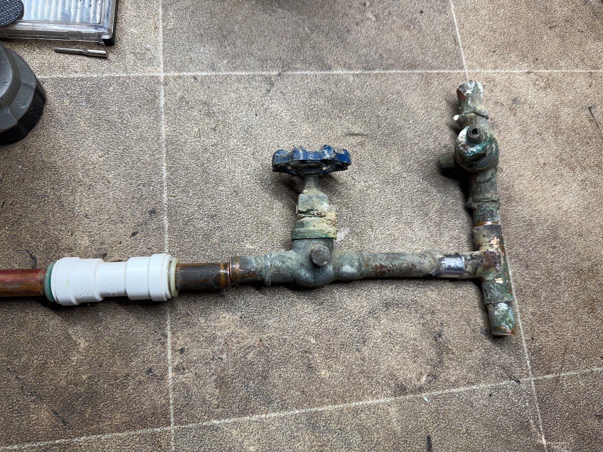 That valve that still has the handle on it was the original supply shutoff to the water heater and it was froze up solid - I had another valve after that anyway. The other valve in the pic with no handle on it was for shutting off the outside water but it was clearly broken. Just time to eliminate all the mess and unnecessary pieces. I hate doing plumbing in the basement because I have to drain a ton of water out of everything above. It never all comes out so it's constantly dripping while I'm trying to work.