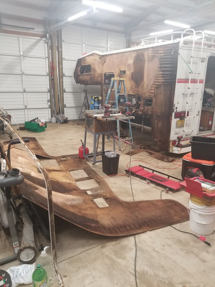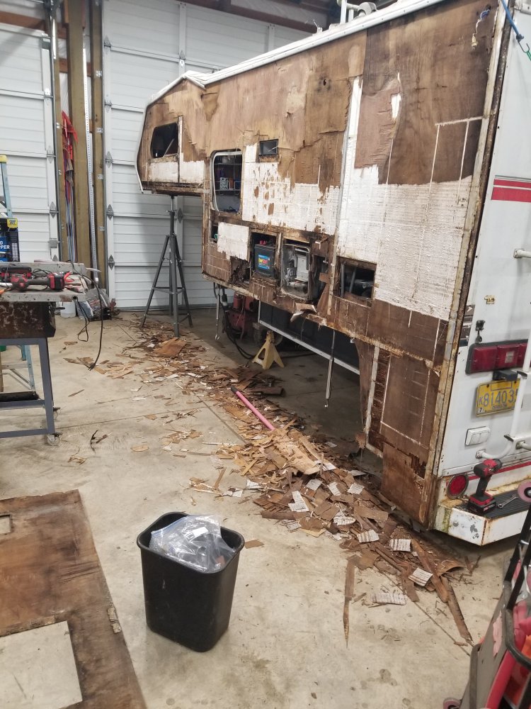 Then there's the camper in the shop fiasco, it's way worse than I expected, conveniently there's an aluminum sub structure but there's some broken welds so I'll fix that, I have most of the plywood stripped from the foam board now but need to see what kinda wood I have on hand to replace all of the rot.