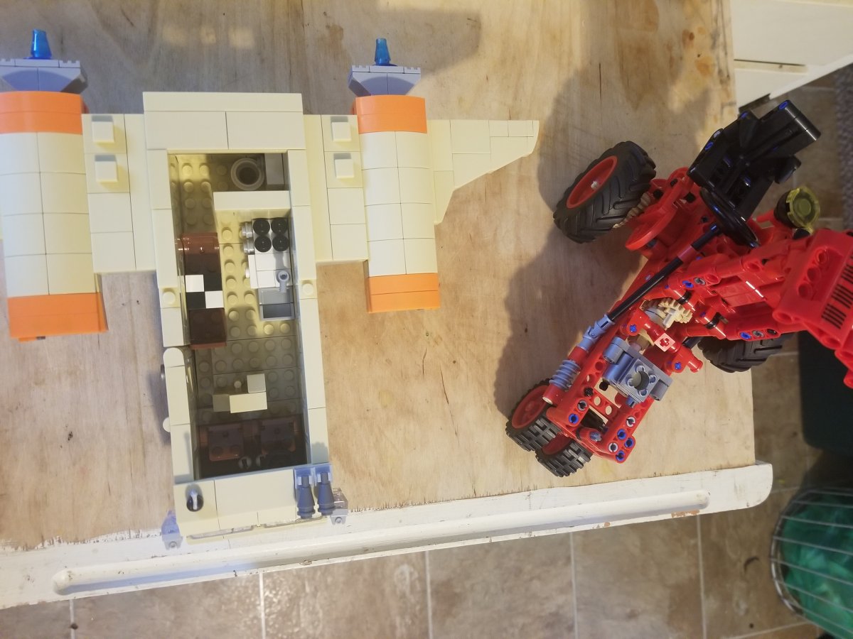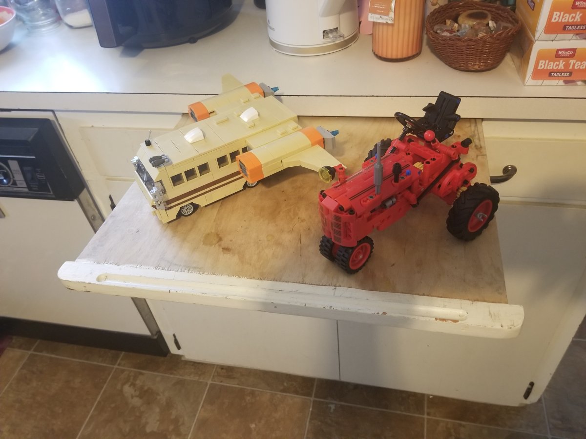Then there's the two (so far completed, still have another to do) imitation Lego kits I got for Christmas, the tractor has steering, an engine and a transmission, the Winnebago has a toilet but no basement for Barf to rock out in...