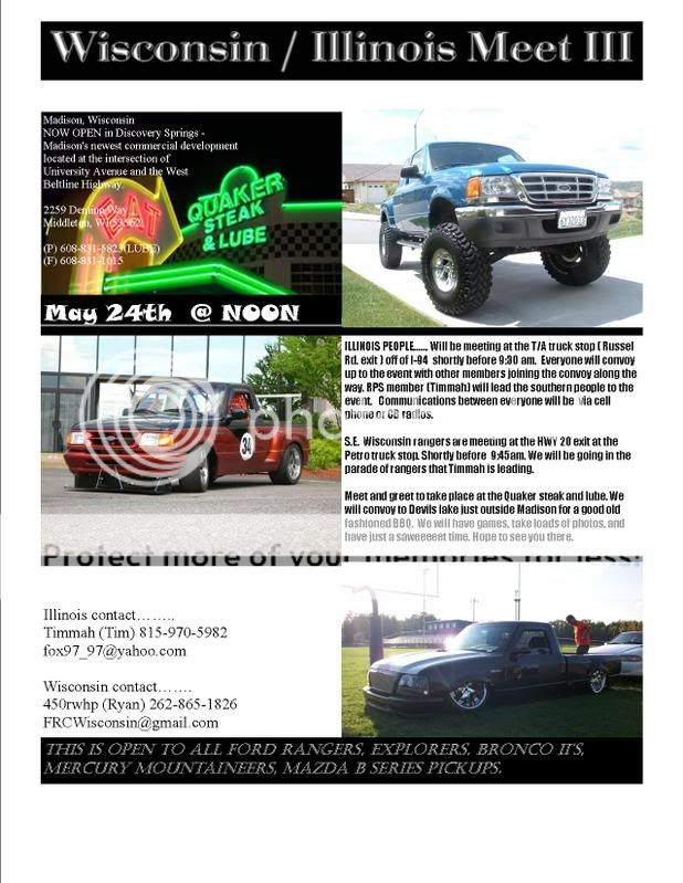 May 24, meet and then a cruse to Devel's Lake for a cook out (as the plans are for right now). Any Ranger, any shape or even if your Ranger is down for work, come and join and meet some others with similar interests.
