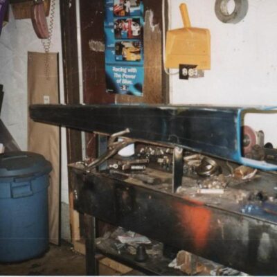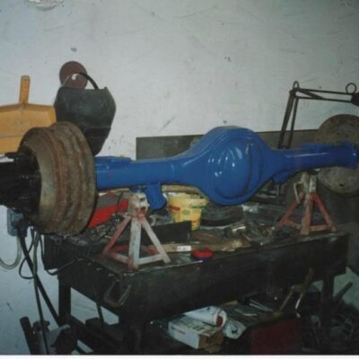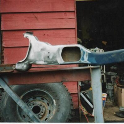 The rear suspension was built with links, but instead of using rear coils, he used a single leaf pack mounted parallel to the rear axle.