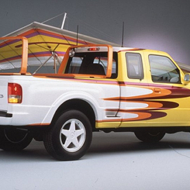 I had planned to paint the Ranger myself. I had painted my 1983 Ford Ranger 4×4 that I called TRS-1 and was prepared to paint this one. My friend Randy Miller was managing a Maaco auto body shop down near Columbus, Ohio and offered to get the Ranger painted for free if I would let them put their logo on it, so I jumped at the opportunity. I had them paint it similar to a waving flag, and then I added the stars, graphics, and sponsor decals.