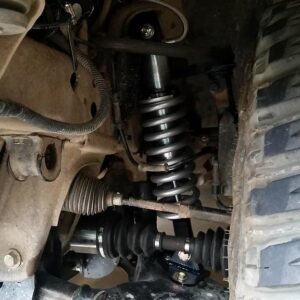 You can clearly see how much more clearance you get switching to coilovers. Also note the sliders made from 2″ x 3″ x 1/8″ steel tubing.