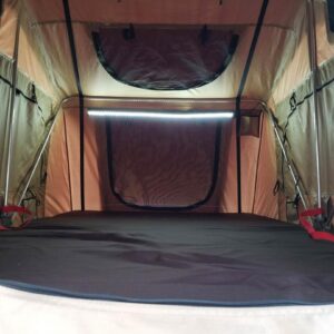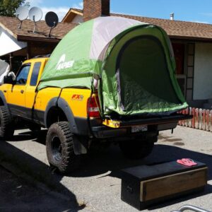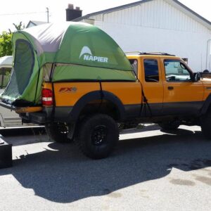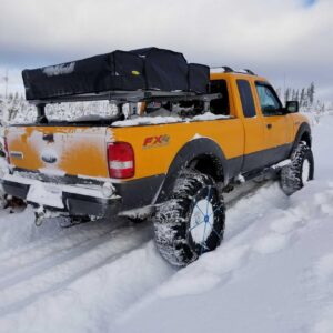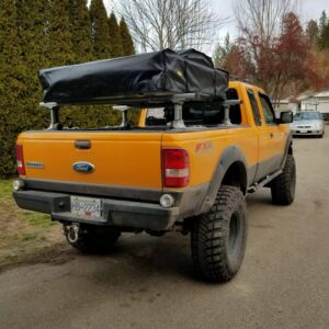 Mr. Bossley has used his truck for hauling dirt bikes, and a canoe, along with an occasional camping trip. For camping, he’s used a fiberglass shell on the bed, and a tent made specifically for a truck bed, before finally going with a Smittybilt Overlander rooftop tent mounted on a Thule Xsporter rack. The Smittybilt tent is quick and easy to set up and take down, while still leaving the bed available for hauling gear.