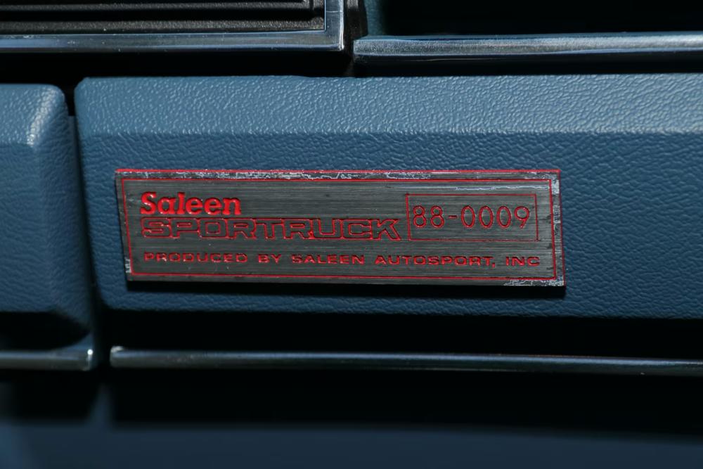 The interior was upgraded with a Momo steering wheel, Saleen Sporttruck gauges, Mustang GT style bucket seats, and a dash plaque letting you know how rare it is.