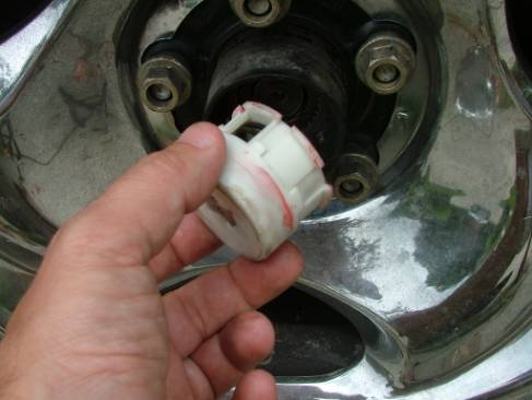 Take a pair of dykes and cut out the “wagon wheel” in the hub cover piece.