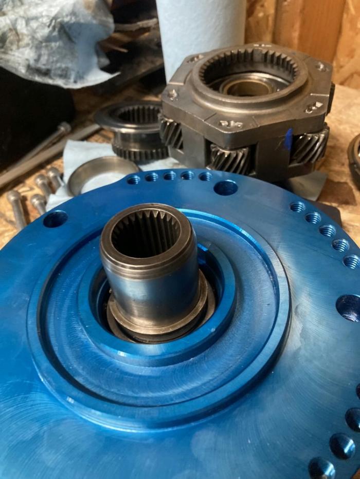 You’ll have to remove the (6) bolts that hold the adapter plate onto the transfer case. When you remove the plate, the planetary gears will be attached to the other side of it.