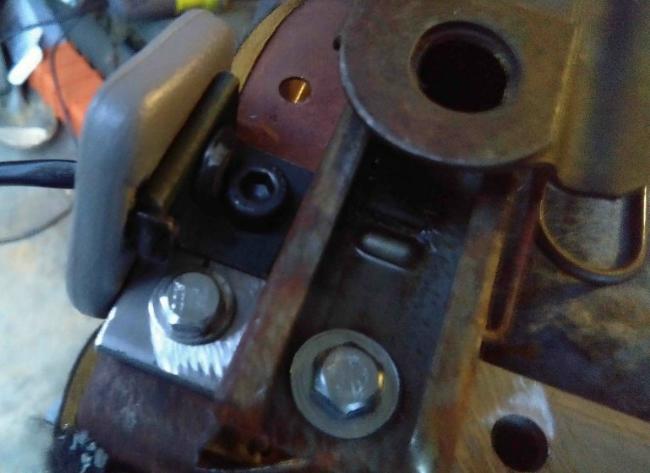 It’s important to either use a thick metal bar or a piece of angle so it doesn’t bend. If you use angle, you’ll have to cut it out to go over the tracks. You can see where this would work with any seat that has a wider track than the Ranger.