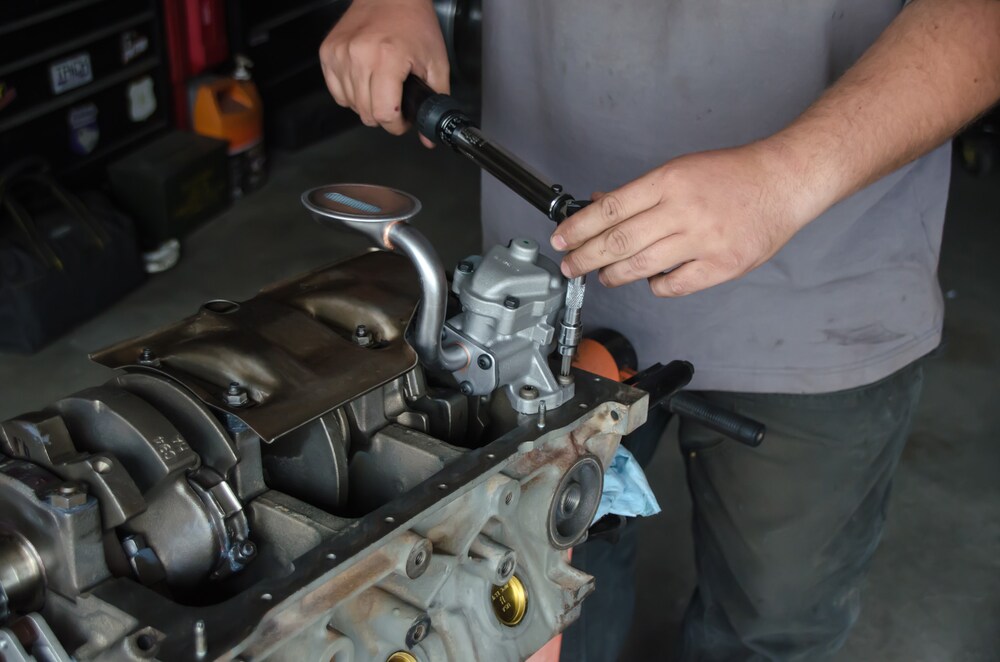 The oil sludge was cleaned out from the inside of the rocker rails and then reassembled with the new rockers. Assembly lube was applied to all contact points as well as to the bearings and moving parts throughout the entire engine during the assembly process. Pushrods were placed in the lifter cups and ball sockets of the rocker arms before torqueing the pedestal bolts down to the heads.