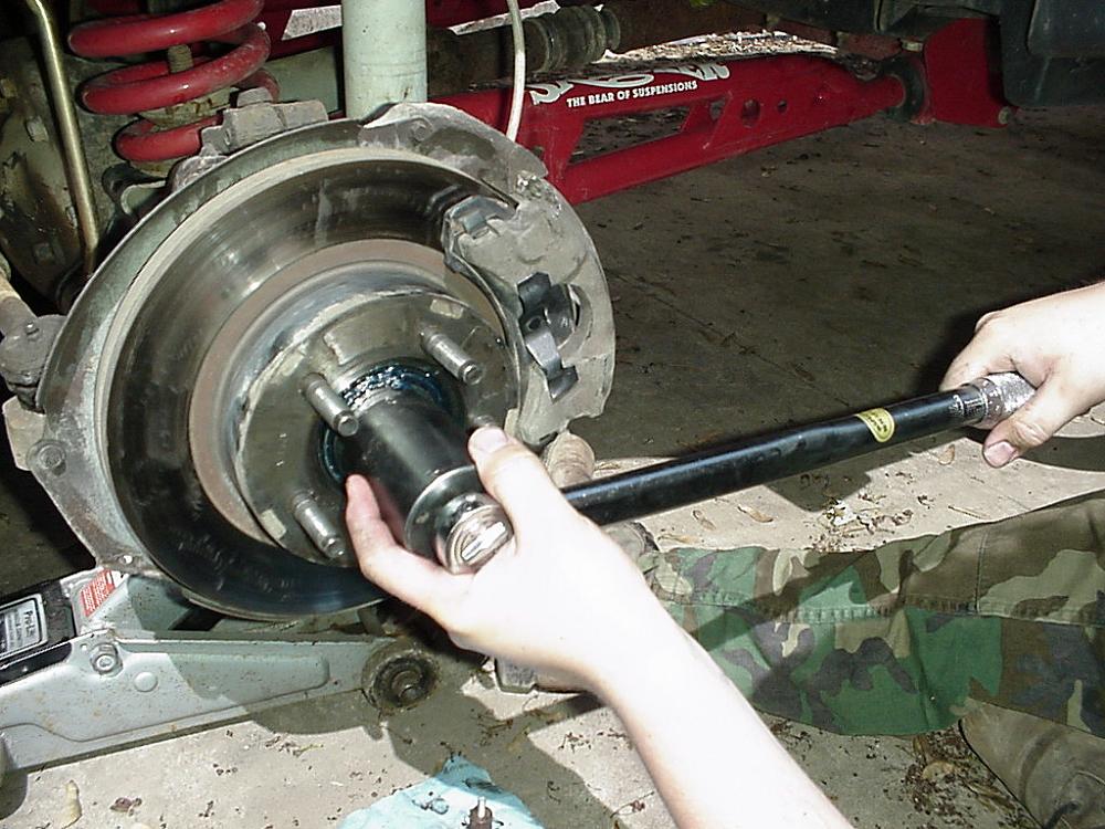- Assemble it and tighten the nut to 35 ft-lbs. while spinning the rotor back & forth.