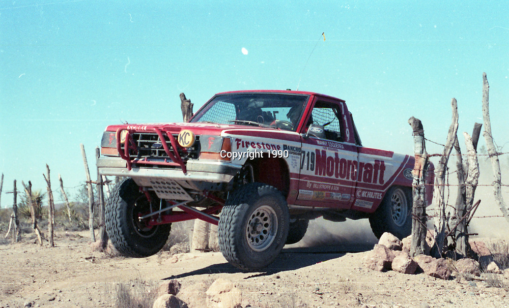 Manny built his own Ford Couriers and raced successfully for many years before being hired to drive for Bill Stroppe. Manny was provided with (2) 1977 Ford Couriers that were built at Stroppe’s shop in 1978. The original project was sponsored by Monroe Magnum Shocks, and Firestone Tires. Once the Ranger’s were done and Manny made the switch, the Couriers were history. During the 10-years that followed, Stroppe and Esquerra became good friends, and one of the most formidable teams in off-road racing history.